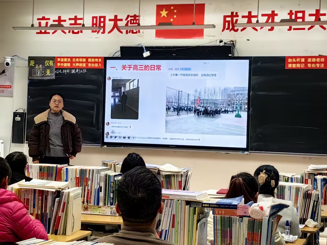 在班级家长会上,沟通更具温度,指导更趋个性化。班主任们通过精心制作的PPT或视频,向家长展示了班级整体的学习风貌、一模考试亮点以及个别学生的进步案例。“每一个孩子都是一颗独特的种子,只是花期不同。当下最需要的,是家校共同给予他们阳光、雨露和耐心的守望。”家长要在最后冲刺阶段,既要关注学习,更要关注孩子的心理状态与生活节奏,做好“后勤部长”与“心理辅导员”。