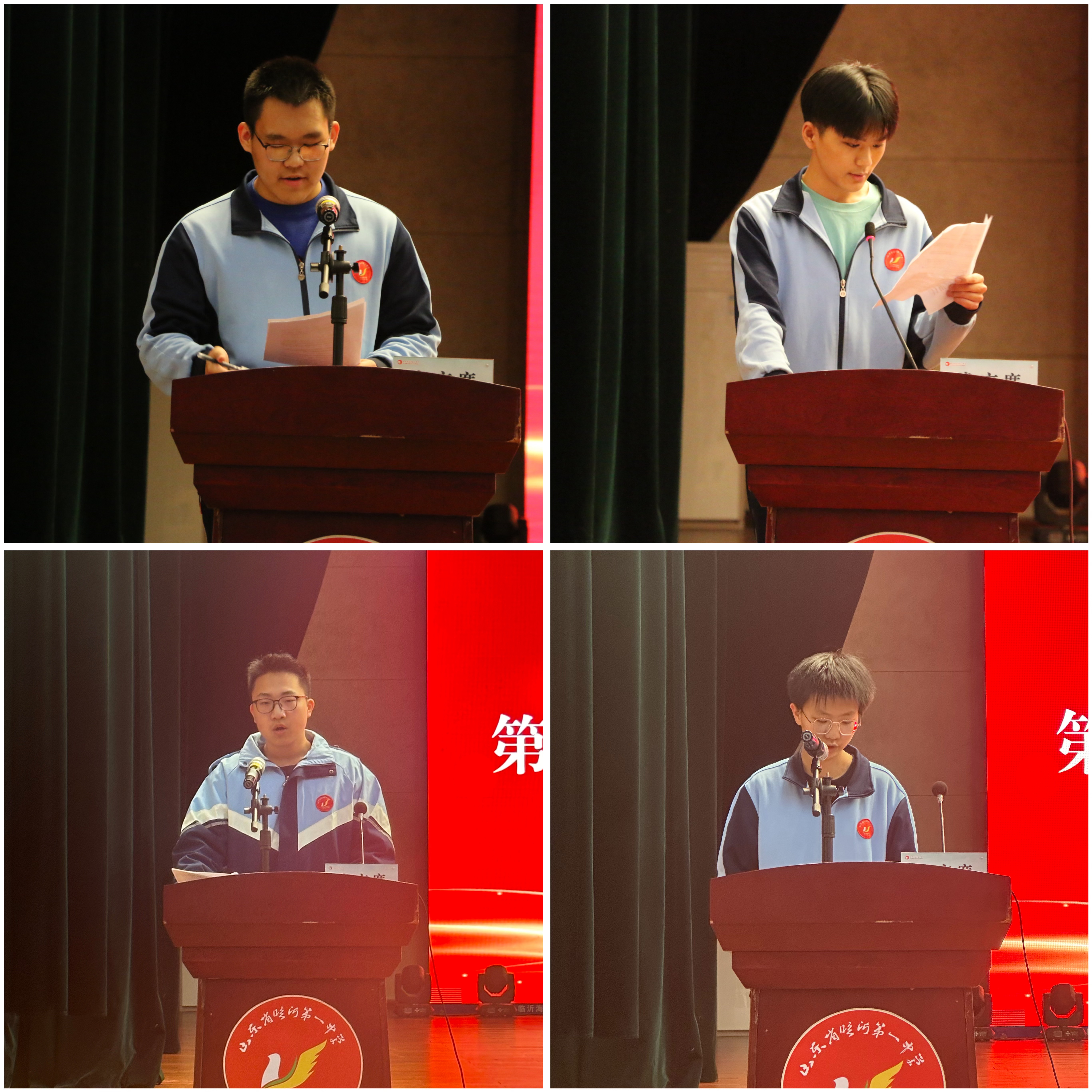 会议第一项,王思成、邵冠祥、张博文、张梓恩四位优秀学生代表依次分享学习经验。他们围绕拒绝假努力、强化思维与错题复盘、注重学科均衡、培养良好习惯等内容向同学们传递了高效实用的学习方法。