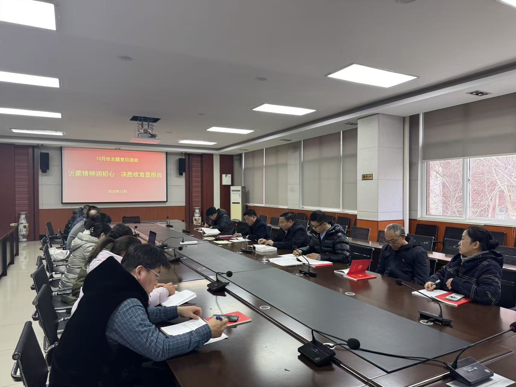 2025年12月22日上午,临沂一中校本部行政第二党支部在办公楼三楼会议室召开12月份“沂蒙精神润初心 决胜收官显担当”主题党日活动会议,学校党委书记陈炳伟参加会议并讲话。会议由支部书记李丰利主持,支部全体党员参加。