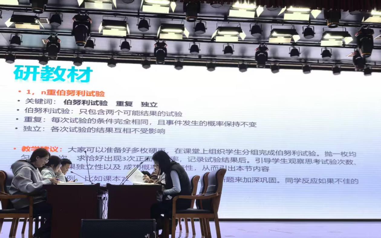 论坛上,高二数学组率先开展“一日一研”新授课展示。教研组围绕离散型随机变量的方差复盘与7.4.1二项分布新课教学展开深度研讨,精准分析学生作业学情,明确以计算能力与概念理解为重点;深入研读课标教材,以n重伯努利试验为切入点,通过实验探究、类比推导、先猜后证等方式突破模型抽象难点;紧扣山东高考考向,聚焦模型识别、概率计算、期望方差及概率最大值问题,实施分层作业设计,兼顾强基班、理科班、文科班与青海班不同学情,真正做到因材施教、精准施教。