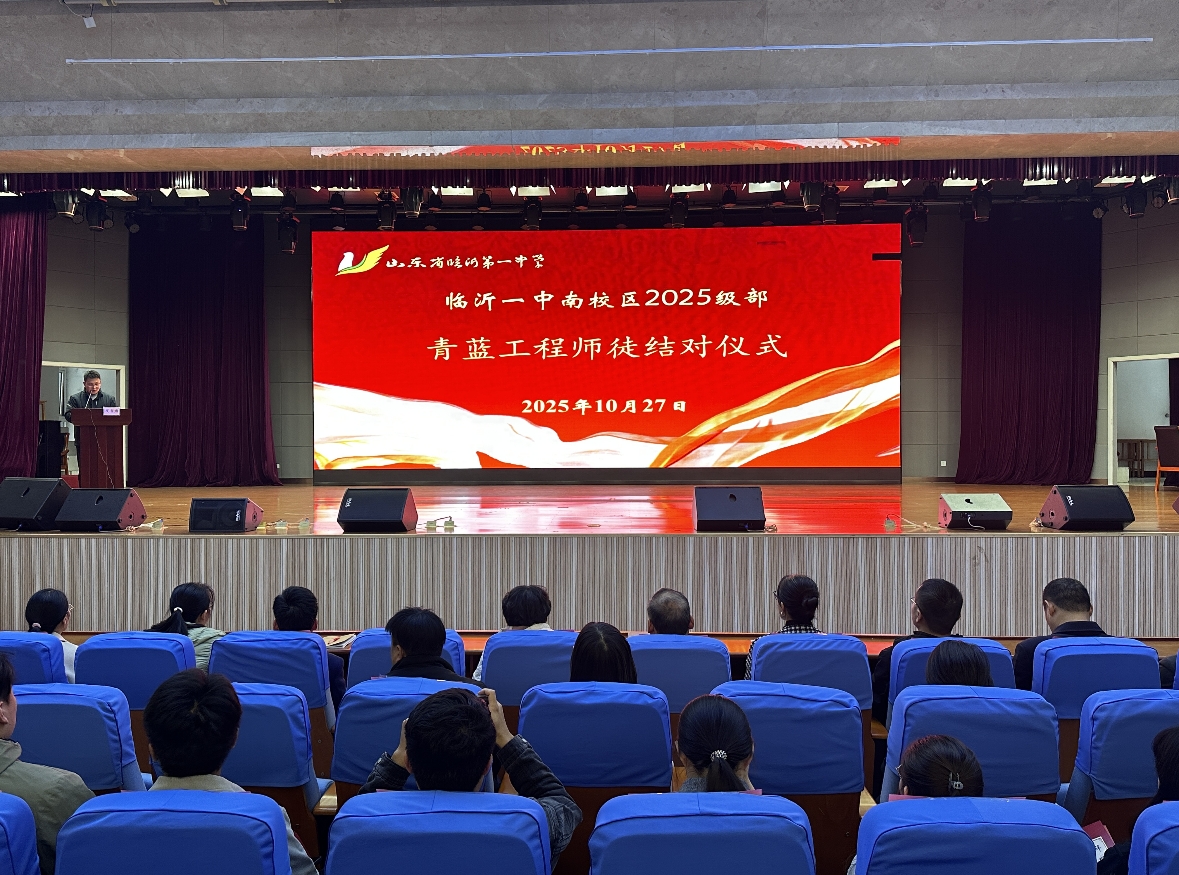 10月27日,临沂一中南校区举行2025级“青蓝工程”师徒结对仪式。临沂一中副校长、南校区执行校长宋青,副校长薛永杰,教务处主任狄丽煊,高一年级主任刘军,年级副主任朱孟乐、蔡全志及高一年级全体教师共同参加。仪式由张嵩主持。