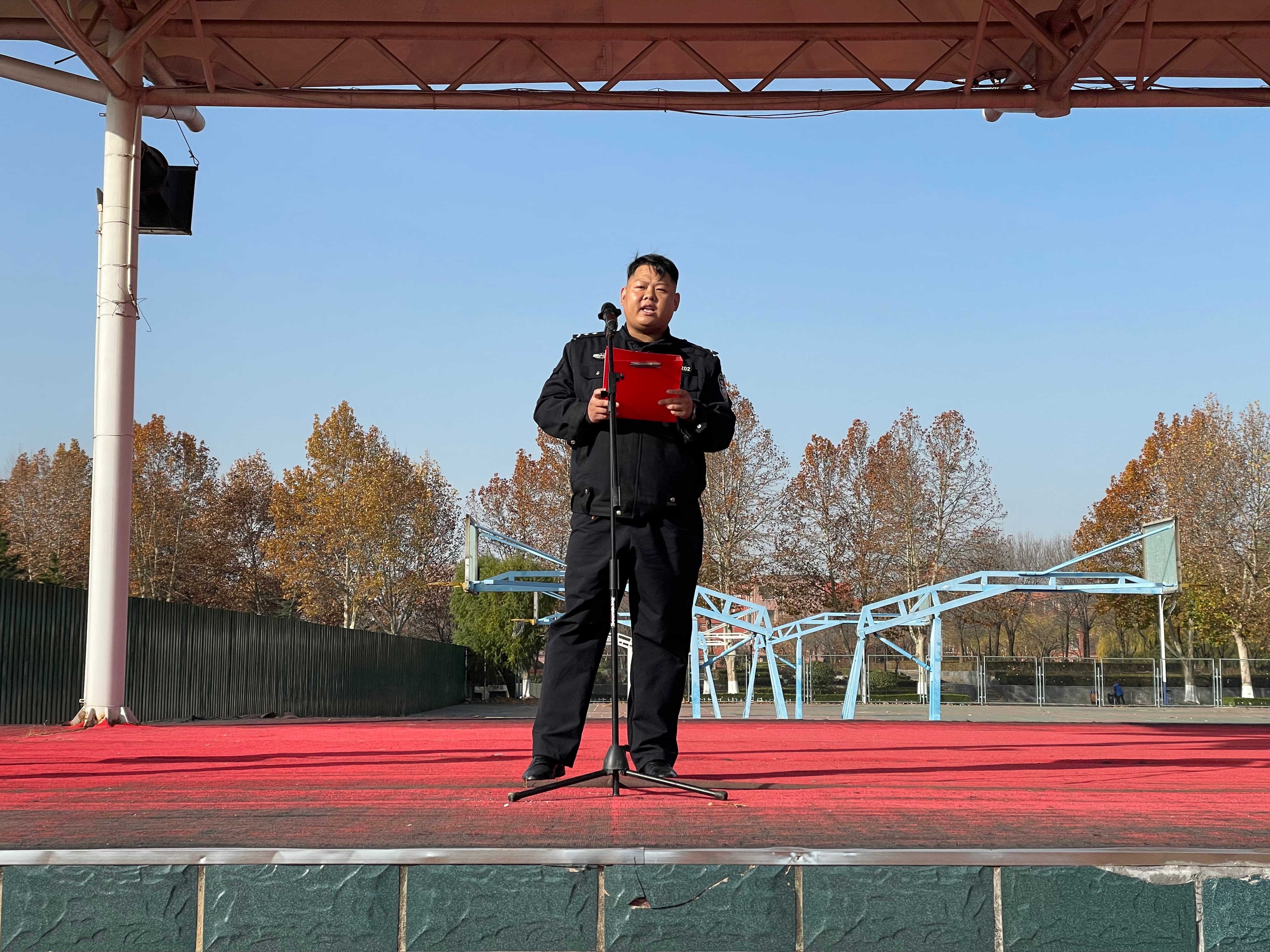 仪式第二项,临沂市公安局交通管理支队河东区大队张强警官开展交通安全授课。