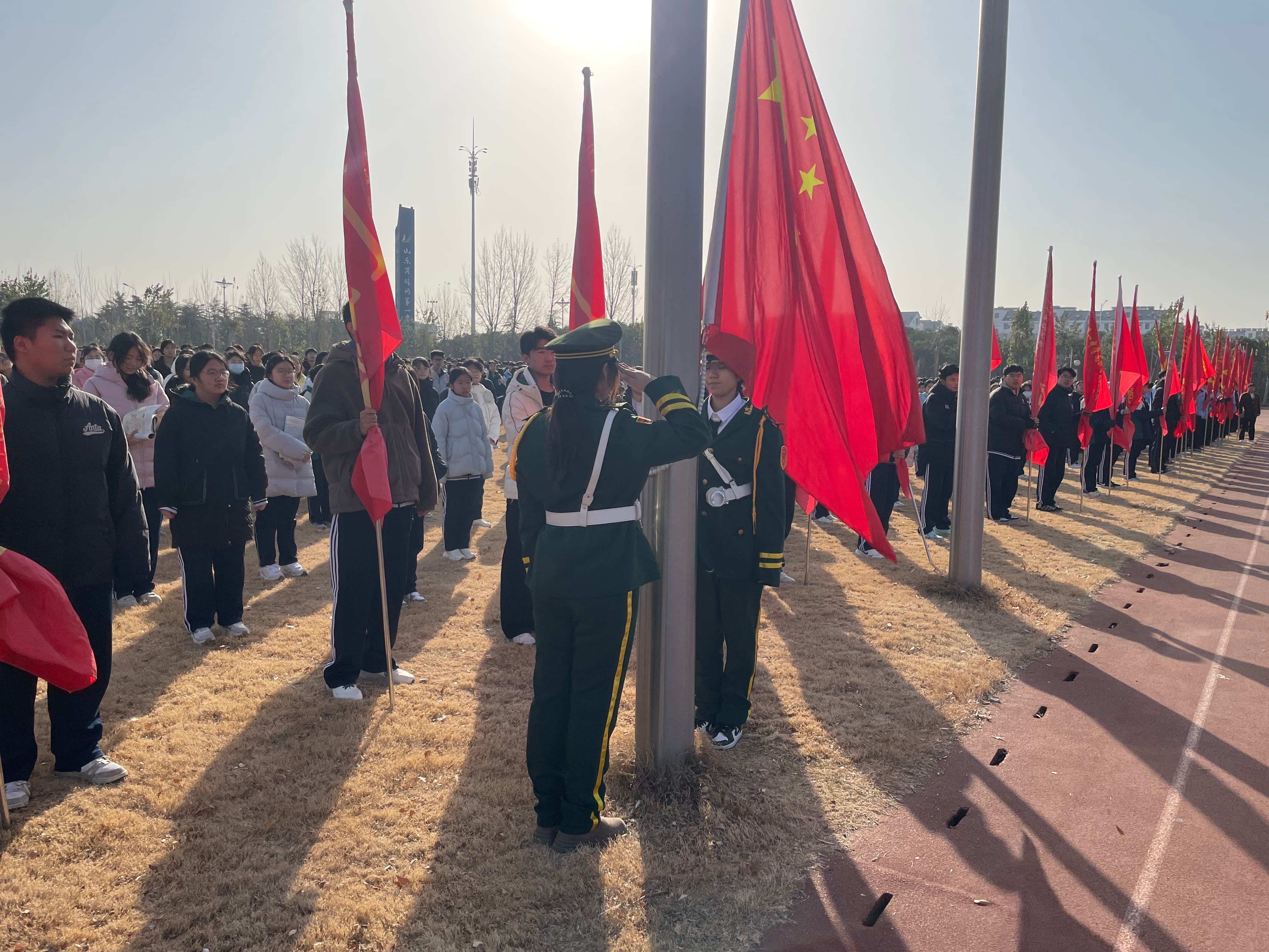 12月1日,南校区举行“文明交通,礼行天下”主题升旗仪式,全体师生齐聚操场,共同接受交通安全教育。本次升旗仪式由政教处副主任张嵩主持。