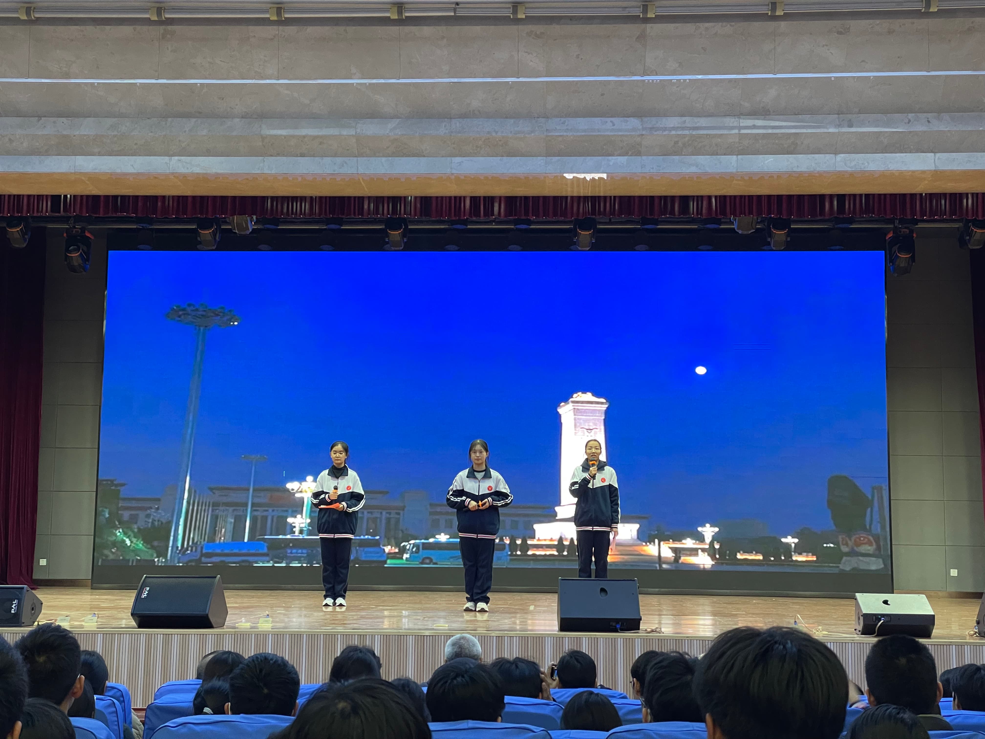 首先出场的是18班同学,一首《月光下的中国》,在她们柔美的声线中,藏着代代青年的期许,展示了一场山河与青春的邂逅。