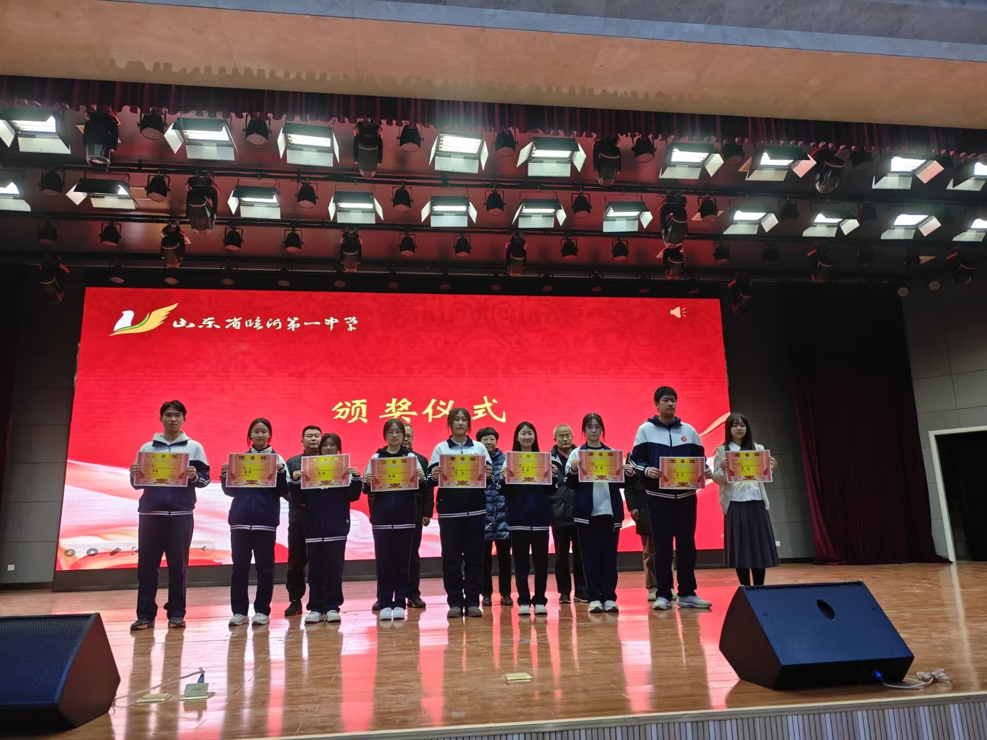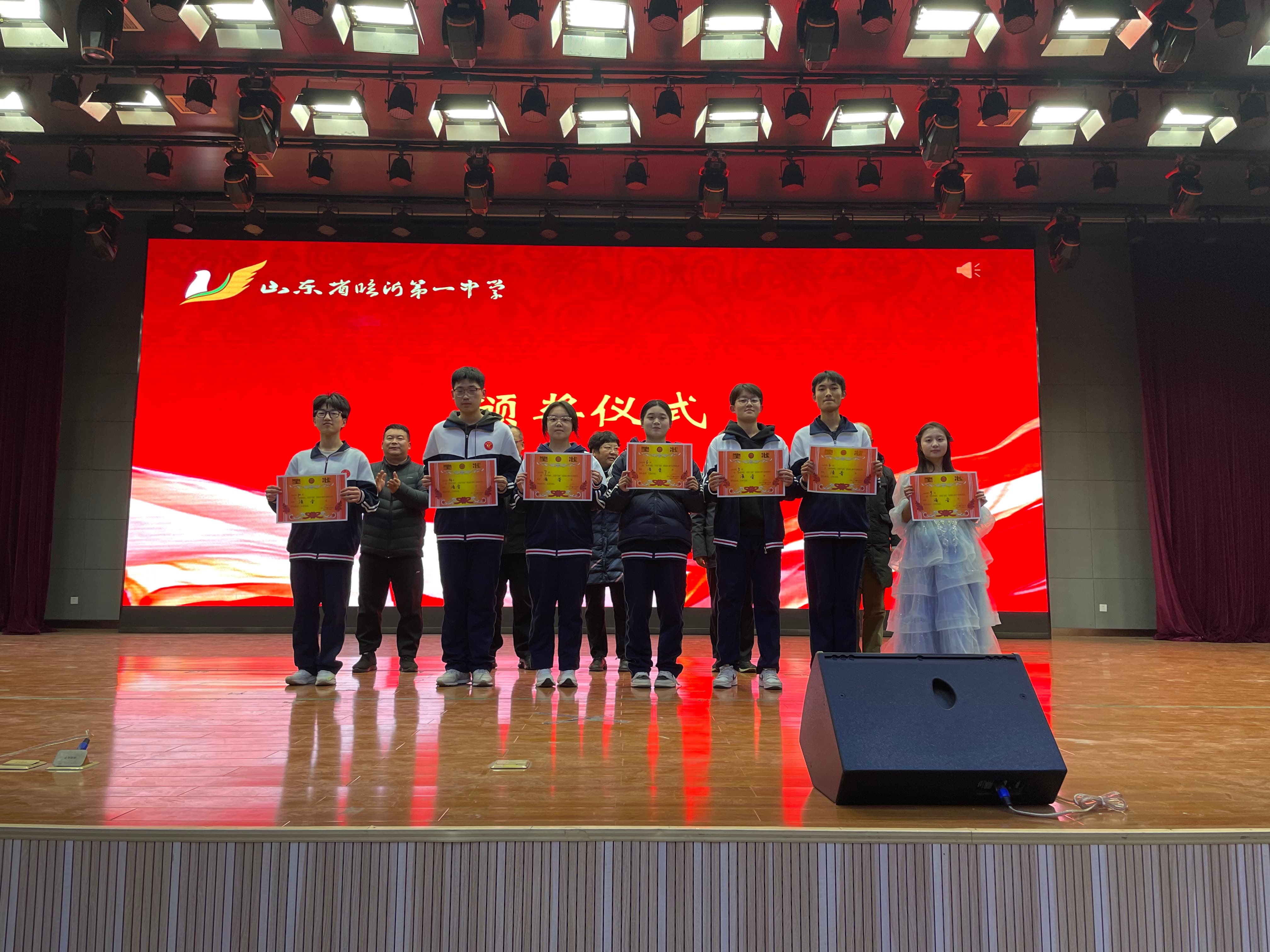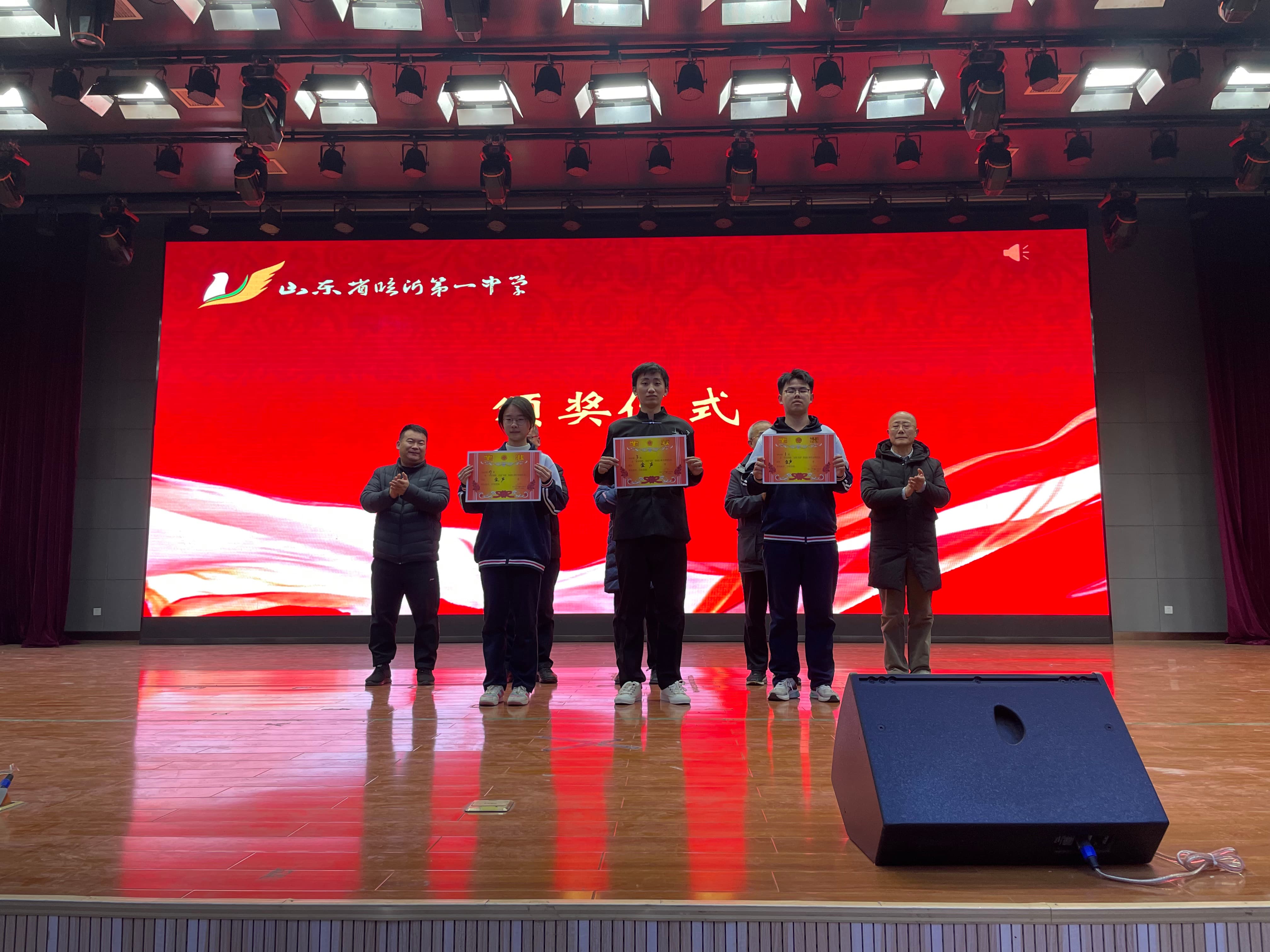 经过评委组老师认真细致地评比,选出一等奖金声奖3名,二等奖清音奖7名,三等奖芳华奖9名。学校领导为获奖的班级进行颁奖。