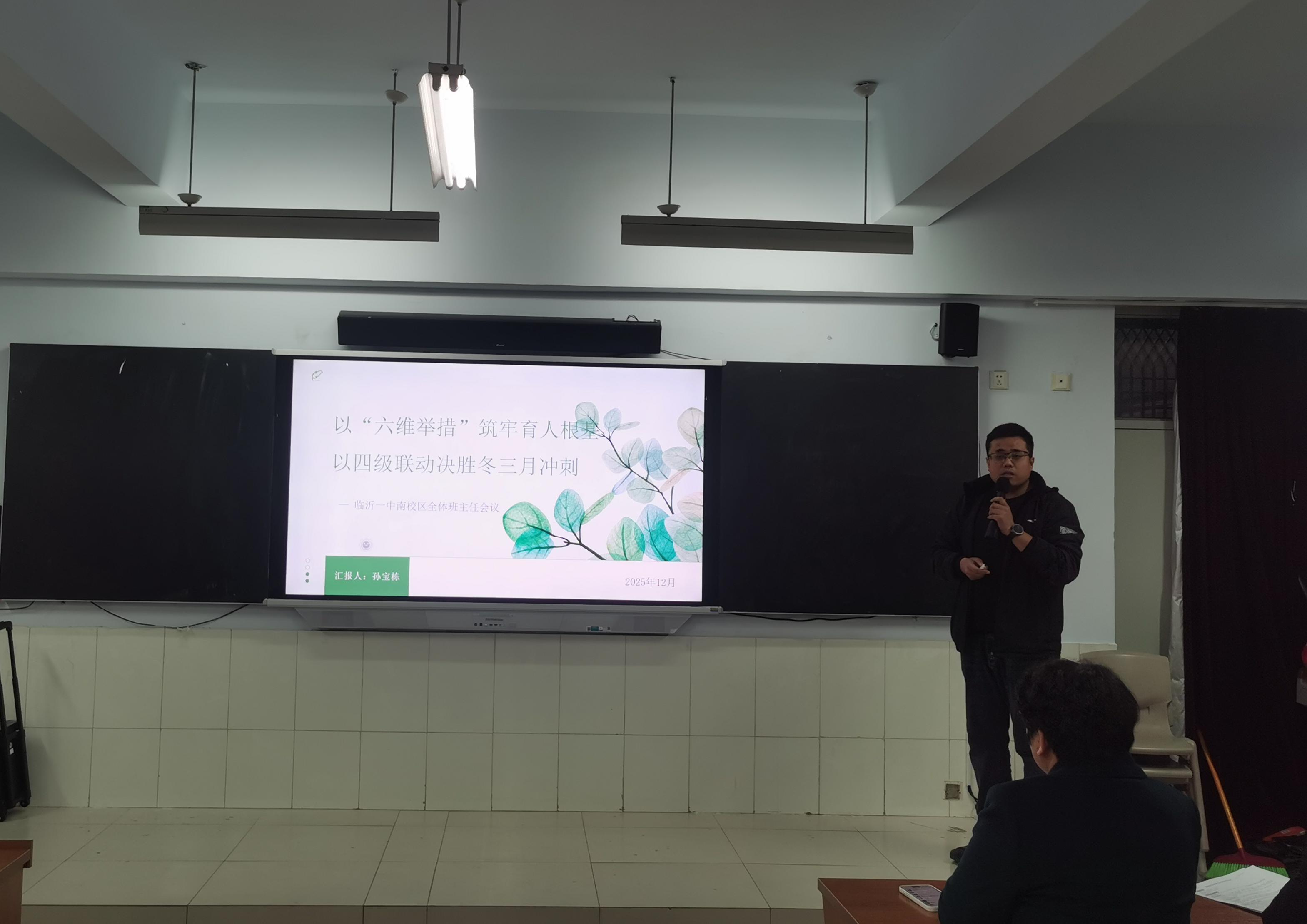 12月7日晚,临沂一中南校区召开全体班主任会议,聚焦班级管理提质、主题班会优化与冬季校园安全等核心工作。临沂一中副校长、南校区执行校长宋青,临沂一中副校长薛永杰出席会议并讲话,全体班主任参会,会议由政教处主任王文平主持。