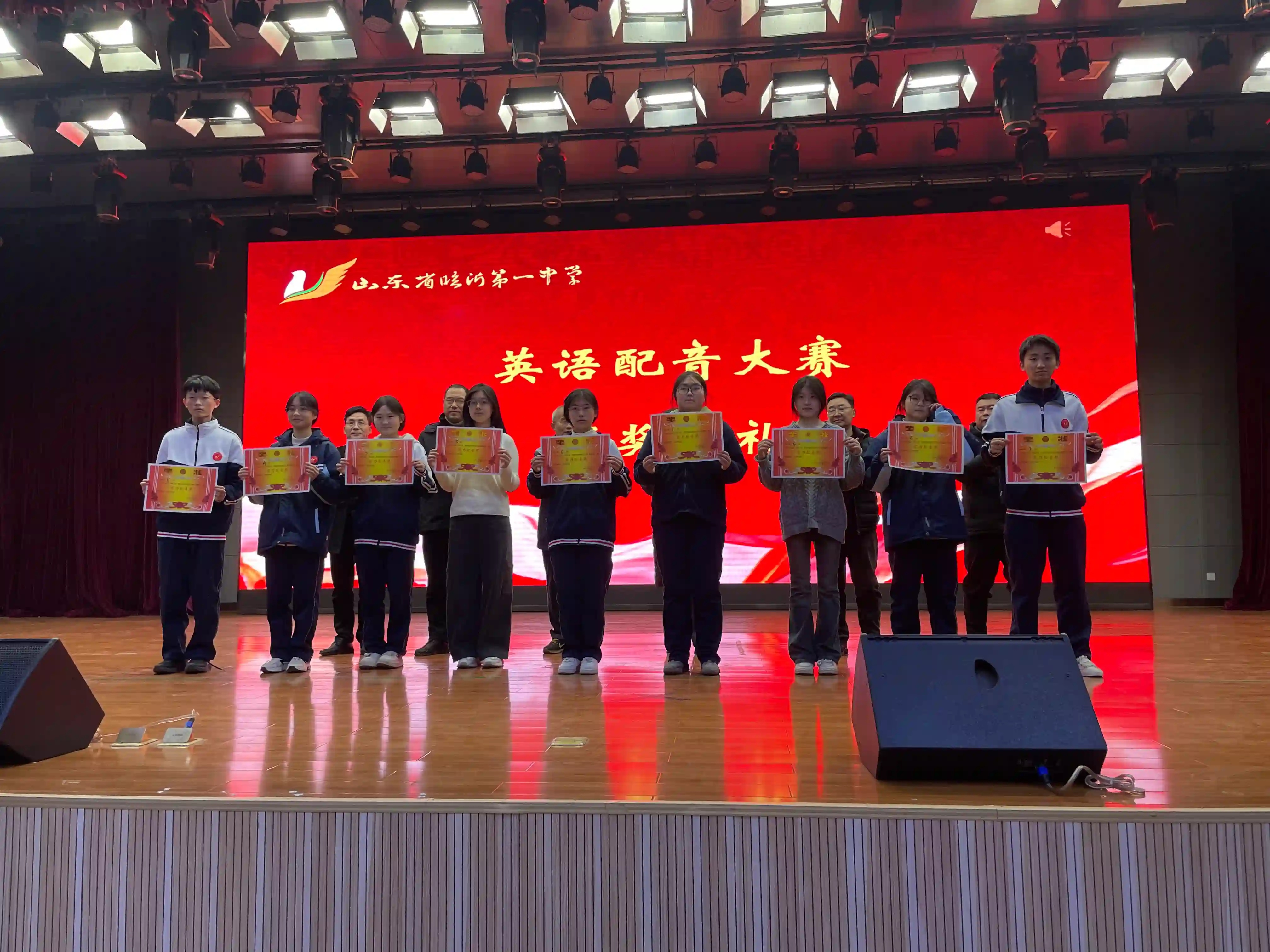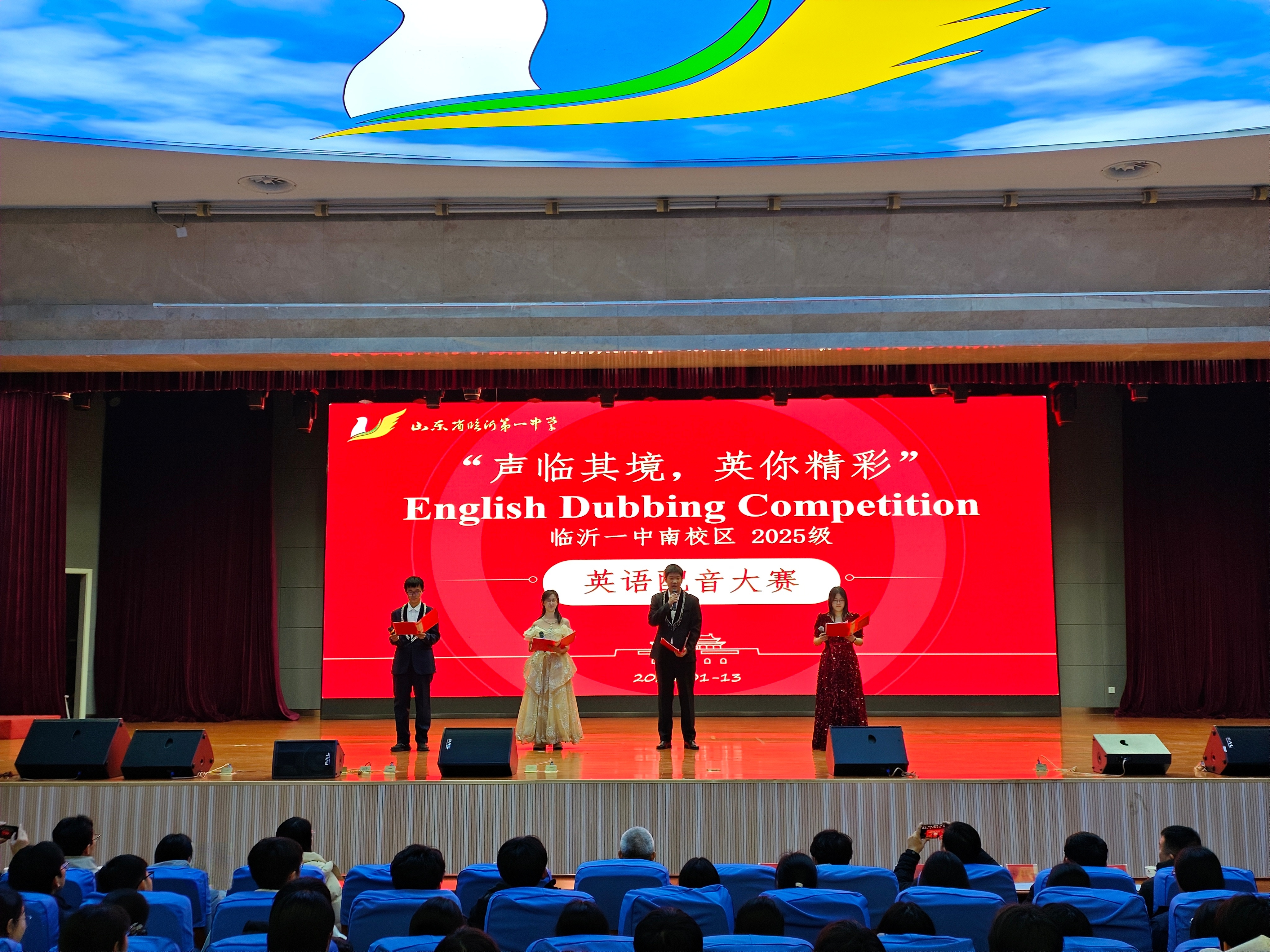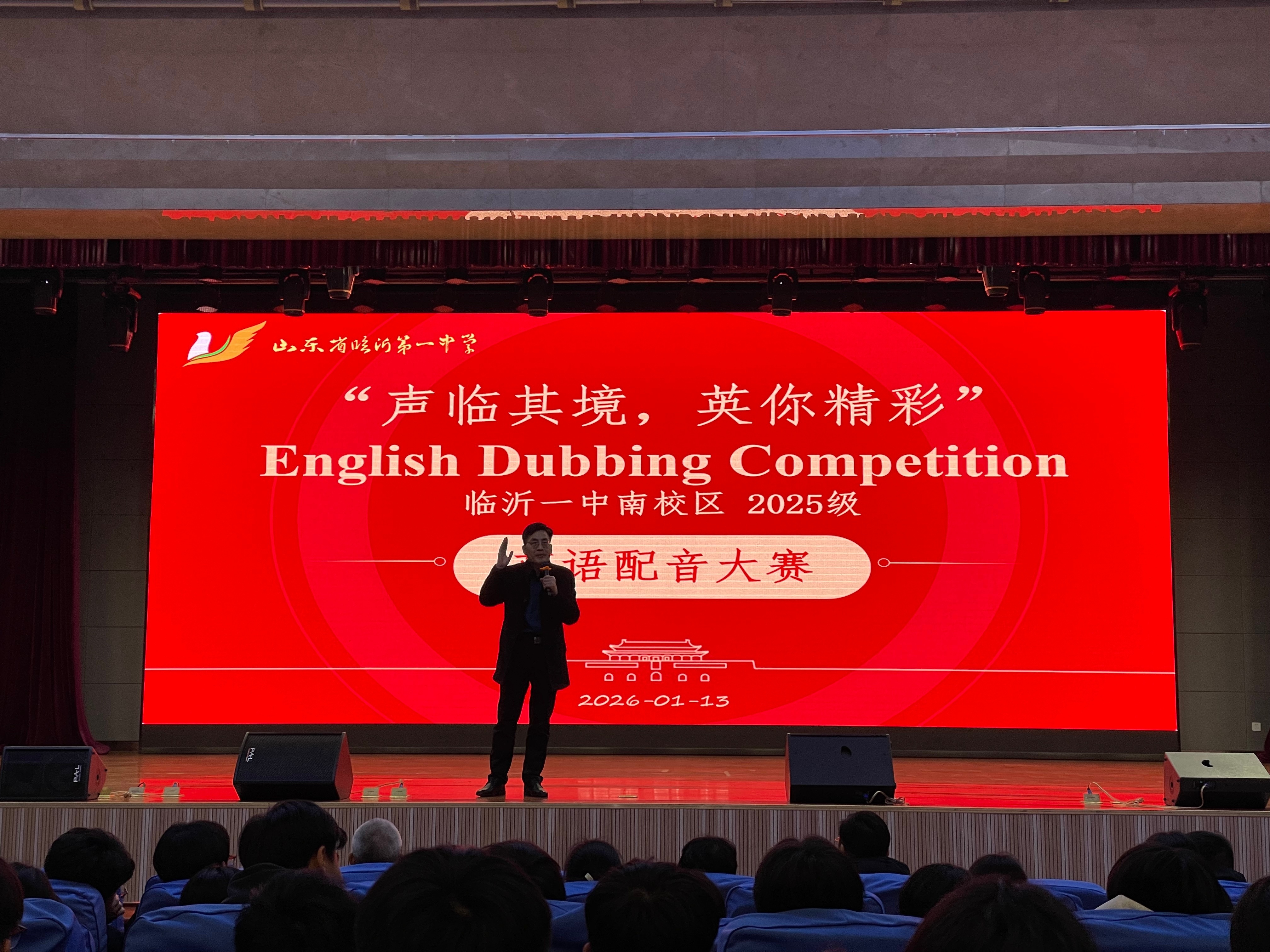 1月13日晚,南校区2025级“声临其境,英你精彩”英语配音大赛在图南大礼堂举行。临沂一中副校长、南校区执行校长宋青,南校区校长助理李付前,青海籍带队领导图布腾,民族部副主任张传军,教务处副主任乔汉银,高二年级主任宋昆鹏,高一年级主任刘军,高一年级全体班主任、英语老师和学生参加本次活动。