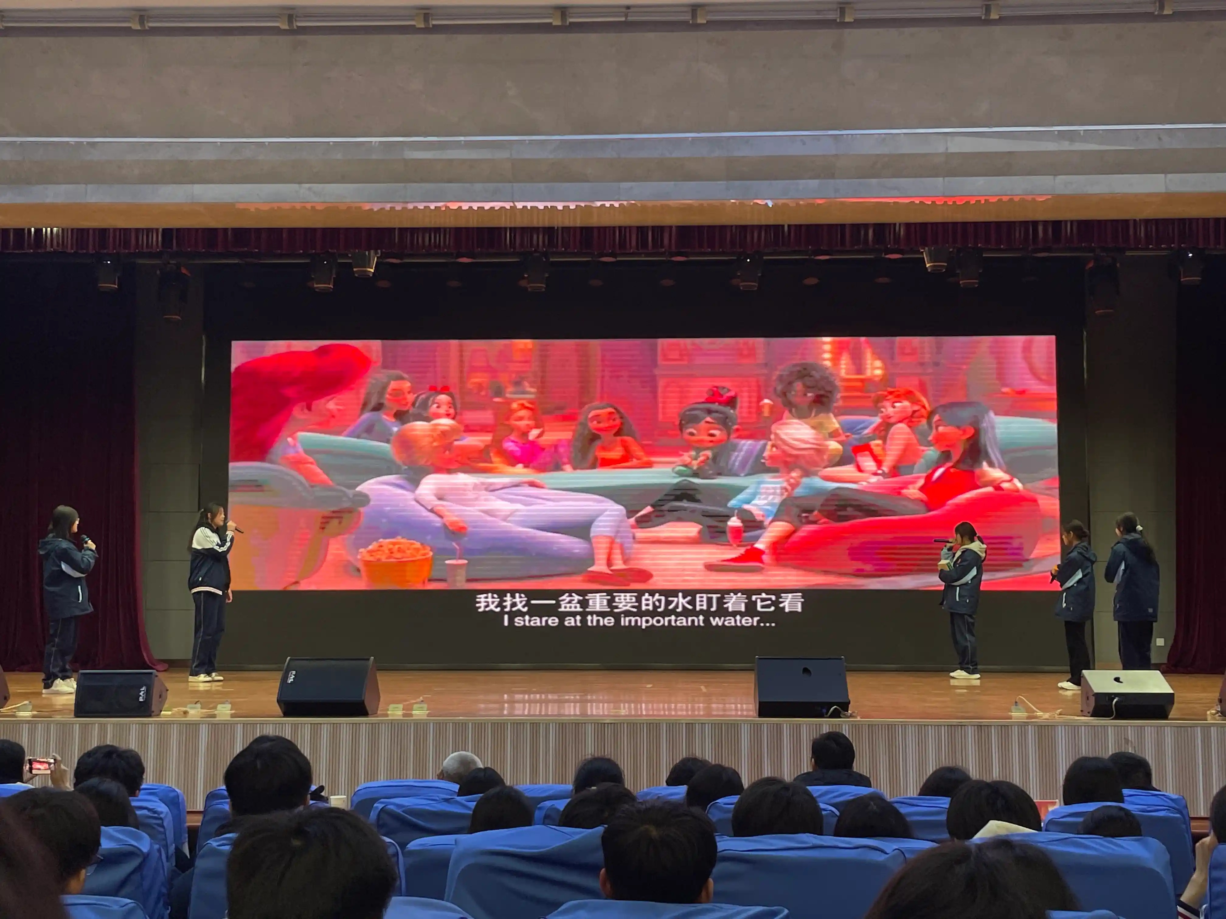 活动伊始,9班张潇雅、11班李雨霏和14班许文泽带来了英文歌曲串烧,在他们清亮而富有力量的歌声里,流淌着青春的热情与世界的共鸣,为即将开始的英语配音大赛拉开了一段跨越语言的序幕。