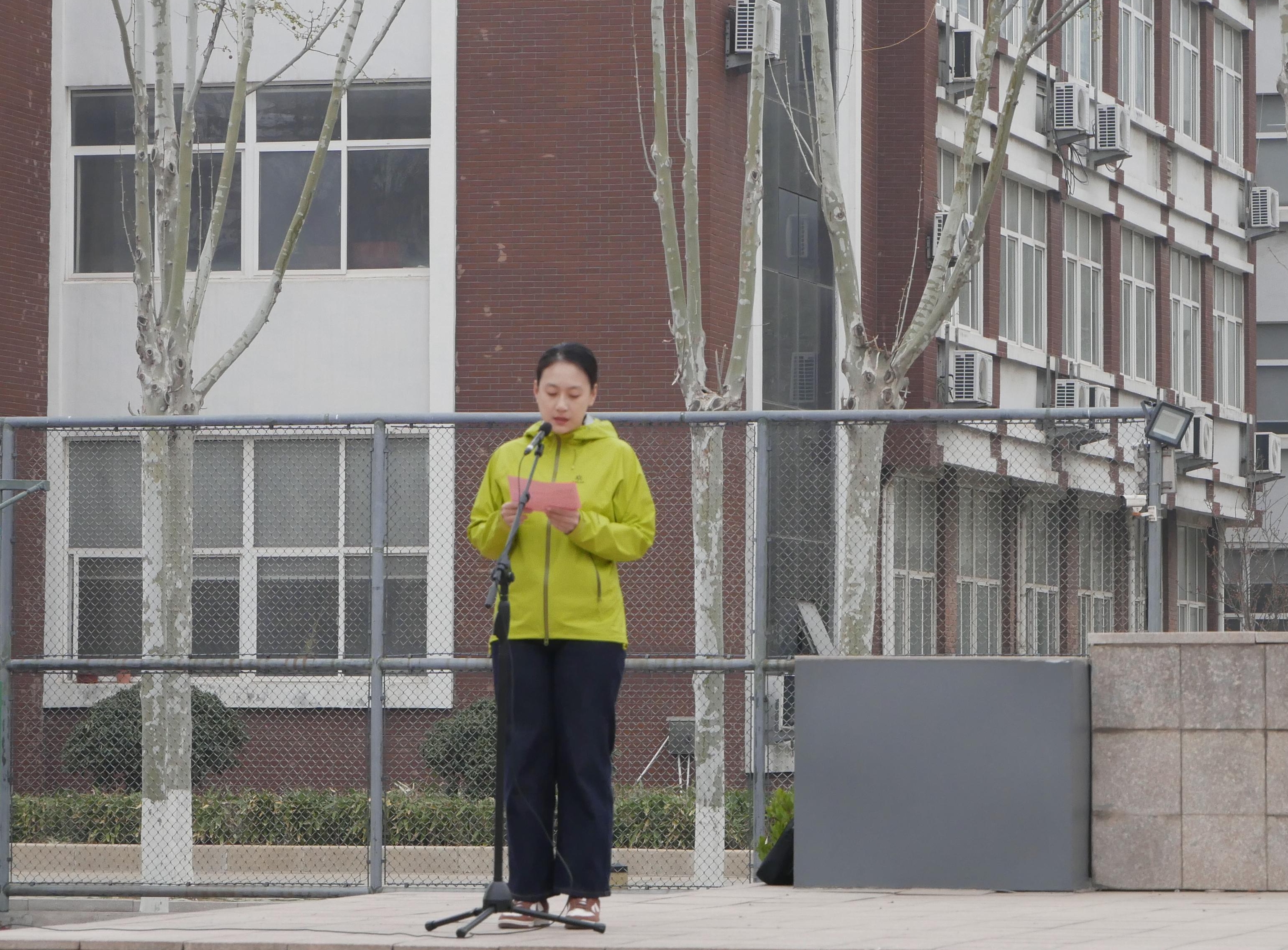 仪式第二项,高二年级王玥老师作国旗下讲话。王老师以“以自强立天地,以少年兴中华”为主题,结合国际局势与国家发展实例,引导同学们深刻理解自强不息的时代意义,勉励大家在学习中坚守韧劲、在成长中锤炼品格,做有理想、敢担当、能吃苦、肯奋斗的新时代青年。