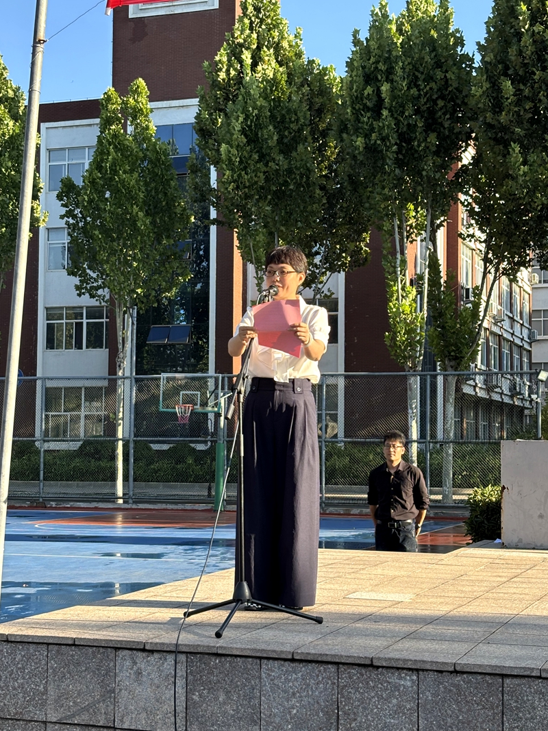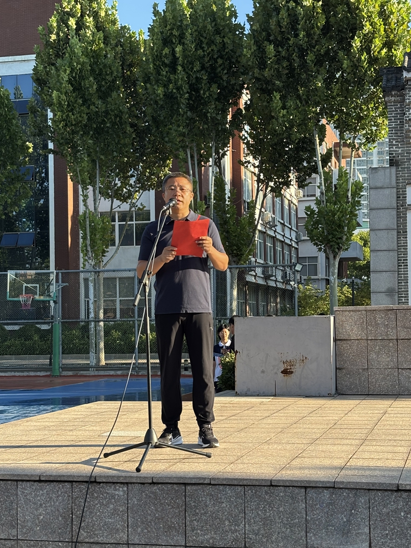 首先,代表学校向新加入的1125名同学,重逢的 1909 名同学、248名教职工表示欢迎与问候;接着,借抗日战争胜利 80 周年契机,回顾 1937 年部分学生南下求学或奔赴延安的校史,强调爱国、奋斗与信仰的精神基因;然后,又分享2022级王怡文同学从成绩靠后到高考逆袭,朱鑫泽等同学因持续努力在高考中超常发挥的真实案例,传递坚持、专注与积累的重要性。