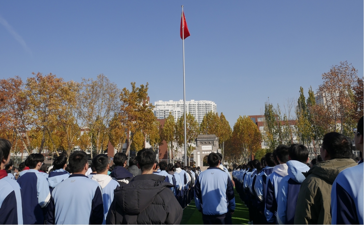 临沂一中校本部举行“期中考试总结表彰”主题升旗仪式