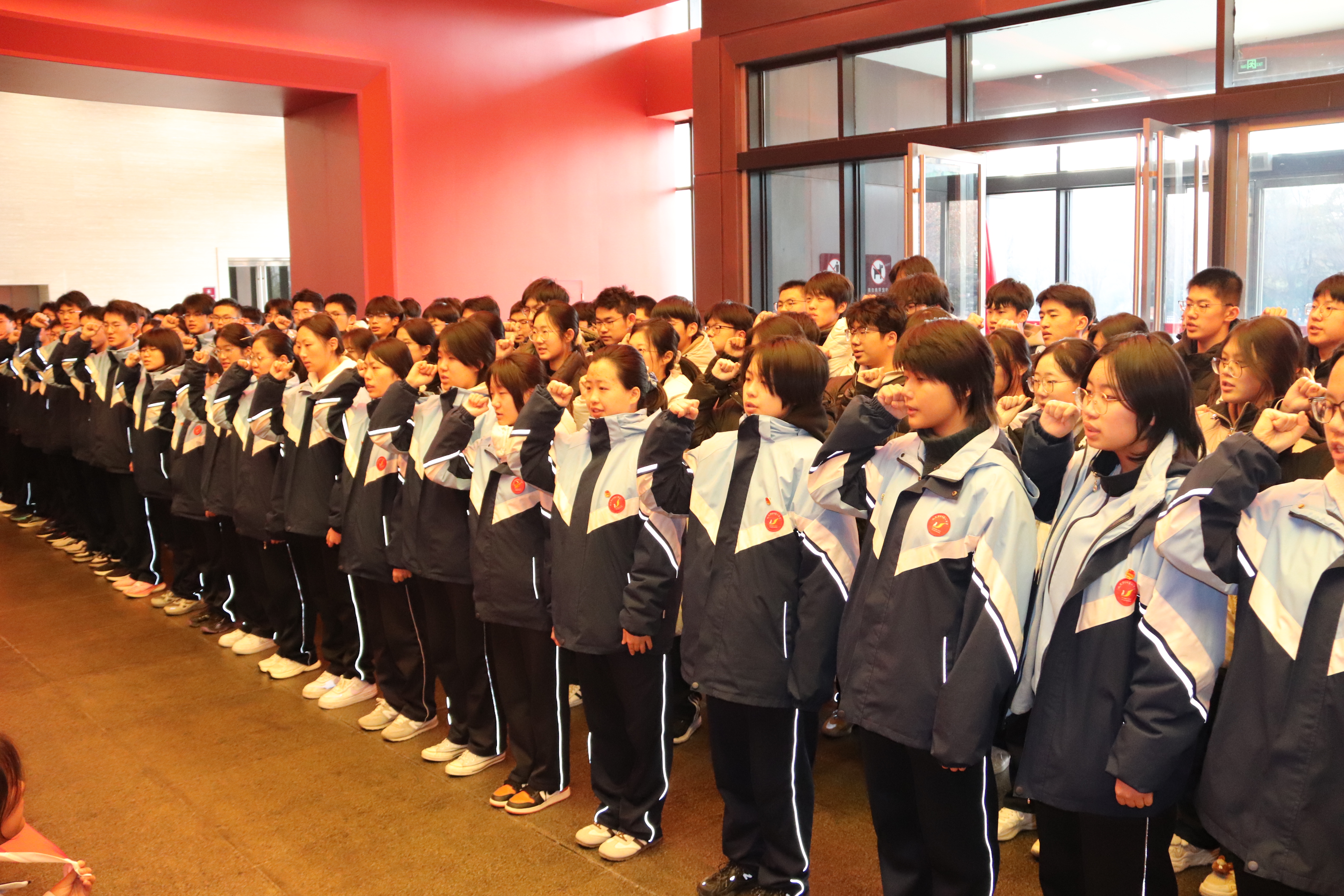 2025年12月31日上午,临沂一中校本部在沂蒙革命精神纪念馆举行“岁序更迭启新程,青春向党映初心”2025年新团员入团仪式。学校部分中层领导莅临现场,与新老团员共同见证这一光荣神圣的时刻,仪式由团委书记董艳主持。