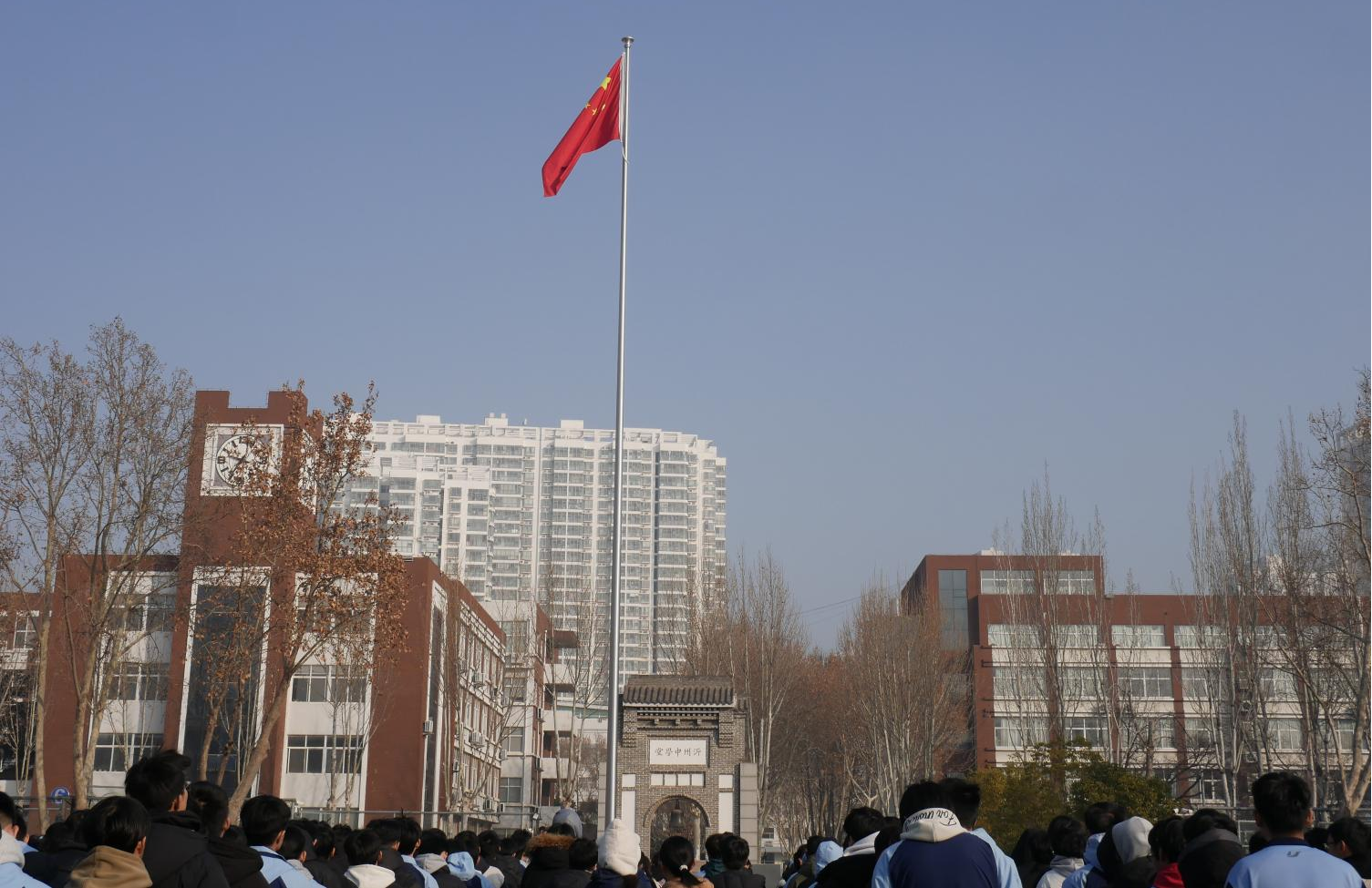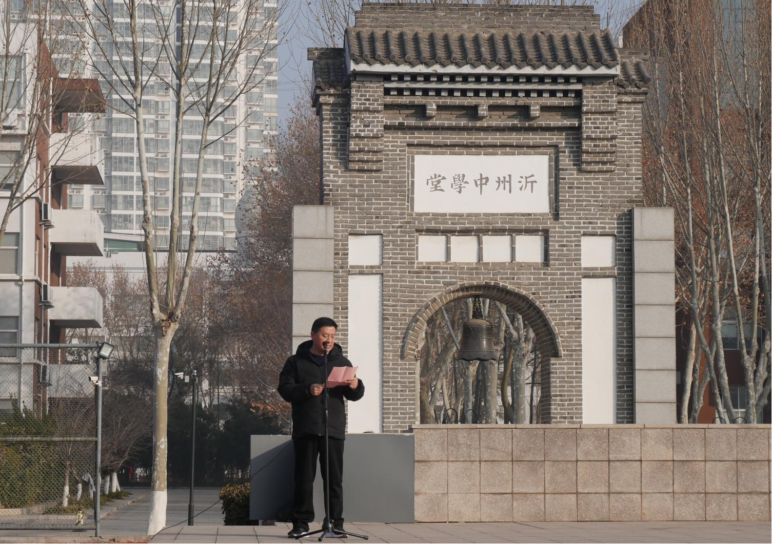 临沂一中校本部举行“冬学月·期末备考”主题升旗仪式