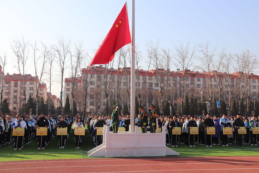 临沂一中校本部举行“冬学蓄力,慧学英语,冲刺期末”主题升旗仪式