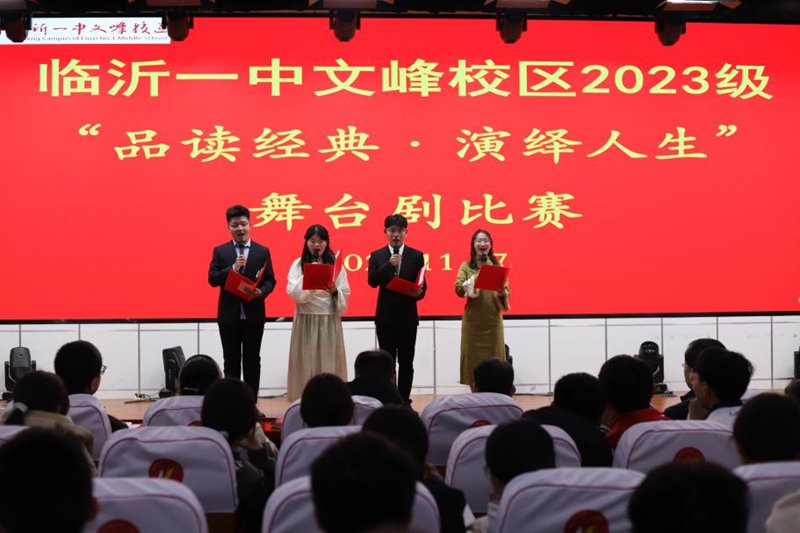 11月27—28日晚,临沂一中文峰校区2023级在艺体楼报告厅举办“品读经典·演绎人生”舞台剧展演比赛。学校党支部书记、执行校长郝廷庆,副校长赵华剑,党支部副书记苏振海,副校长颜廷林,总务处主任赵乃永,2022级年级主任张昊,2024级年级主任杜晓东,2023级年级管理团队以及2023级全体学生参加。担任评委的有总务处主任赵乃永,心理教研室主任李梦桃,2023级年级副主任梁学成以及高二年级部分语文教师。