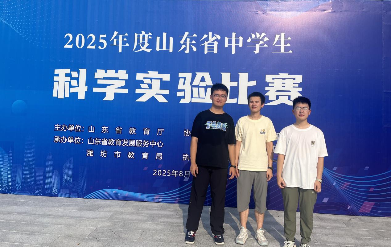 在8月18日至19日举行的2025年度山东省中学生科学实验比赛中,来自全省各地市的109支高中化学代表队齐聚一堂,同台竞技。我校化学教师高源带领卢凯文、刘腾阳、赵广宇三位同学在比赛中脱颖而出,勇夺一等奖。