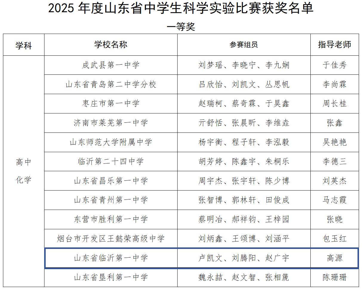 临沂一中学子在山东省中学生化学科学实验比赛中斩获佳绩